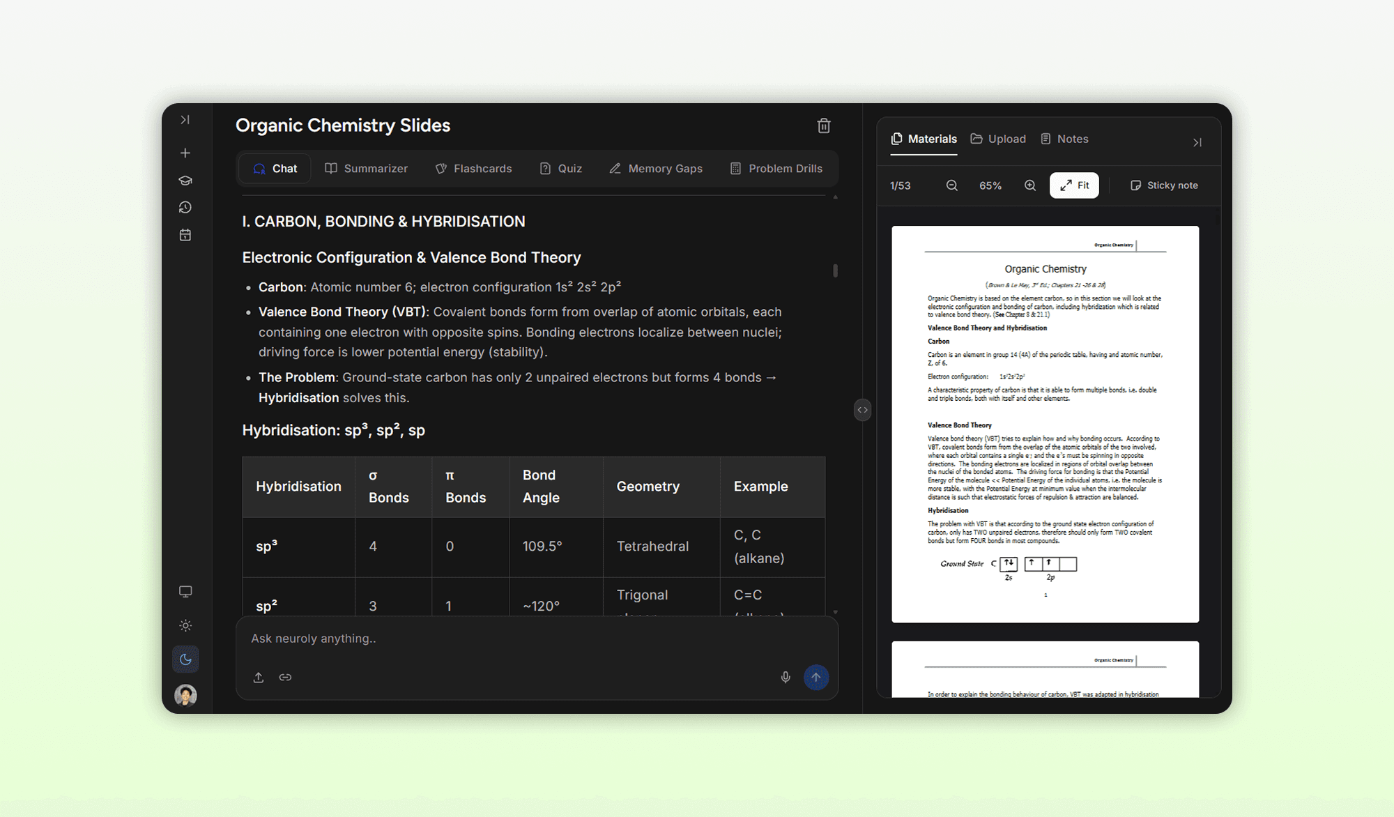 Ask Neuroly to simplify complex topics and gain clarity on anything your studying.
