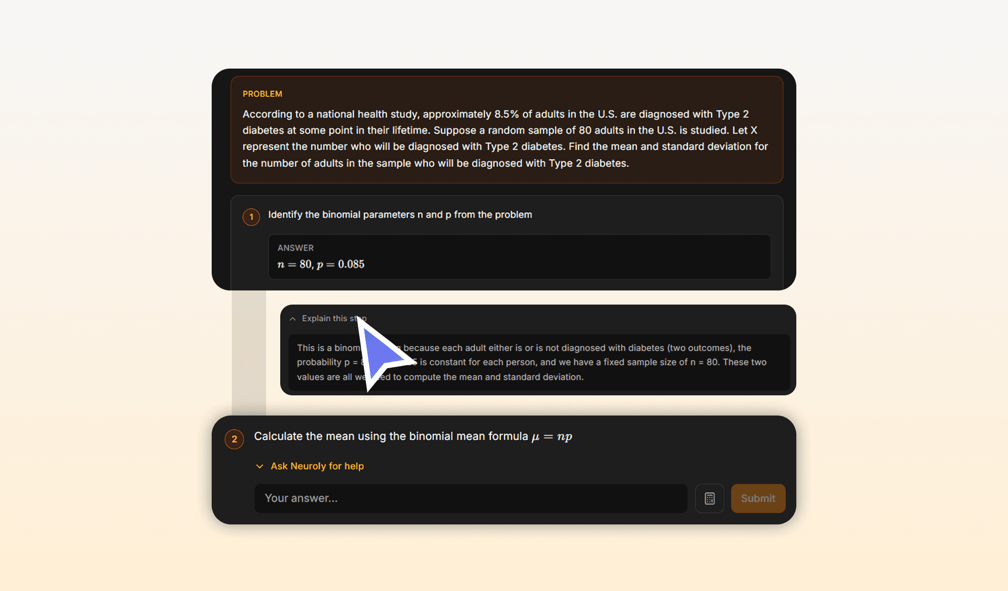 Neuroly is SO SO helpful. I literally use it for all of my classes. The tutor mode feature really helped me learn harder concepts quicker.