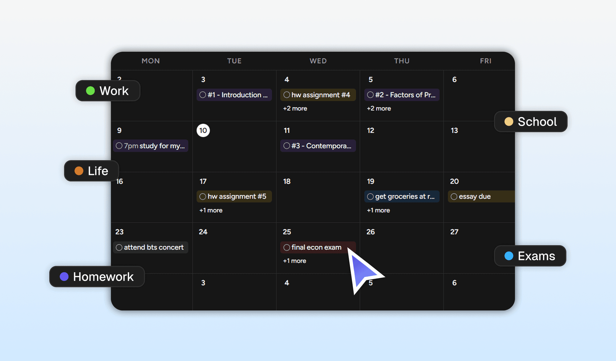 Keep assignments, exams, and personal tasks organized in one simple system.